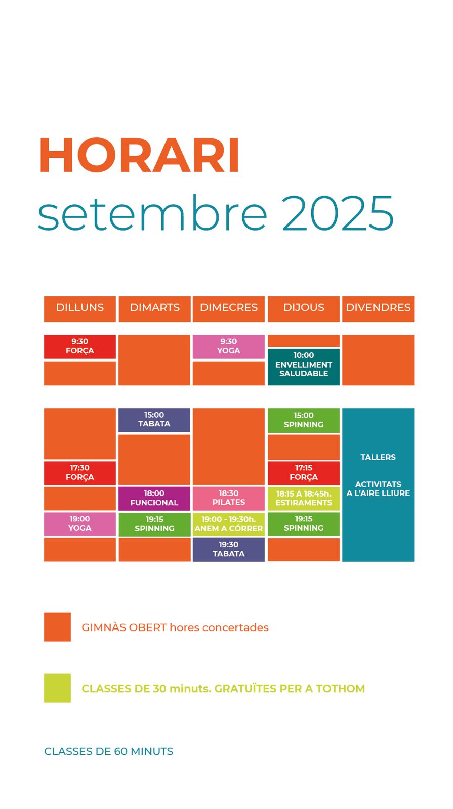 yoga, força, spinning, tabata, pilates, envelliment saludable i TRE